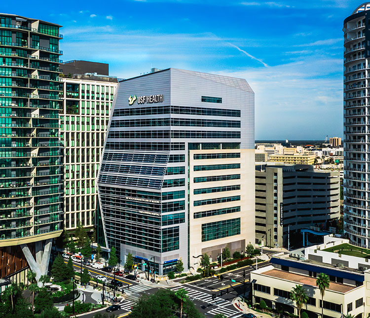 Our USF Health building in downtown Tampa is a 395,000-square-foot, state-of-the-art facility featuring world-class labs, high-tech learning areas, and top-notch research spaces. It houses the USF Health Morsani College of Medicine, Taneja College of Pharmacy, and the Heart Institute. Situated near Tampa General Hospital, the USF Health South Tampa Center for Advanced Healthcare, and the USF Health Center for Advanced Medical Learning and Simulation (CAMLS), our iconic building is transforming education, research, and patient care in our region and beyond.