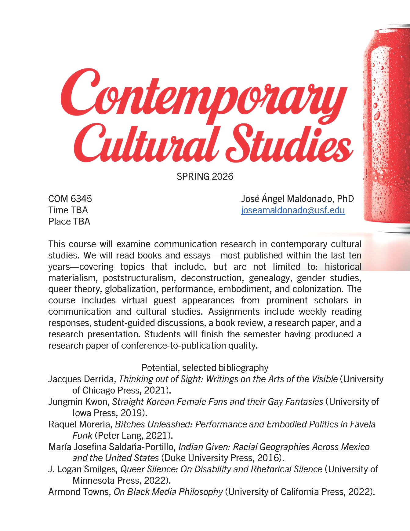 COM 6345 - Contemporary Cultural Studies (Maldonado)