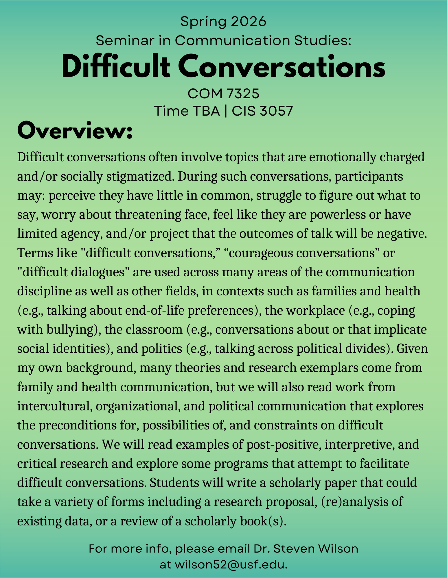 COM 7933 – PhD Seminar: Difficult Conversations (Wilson)