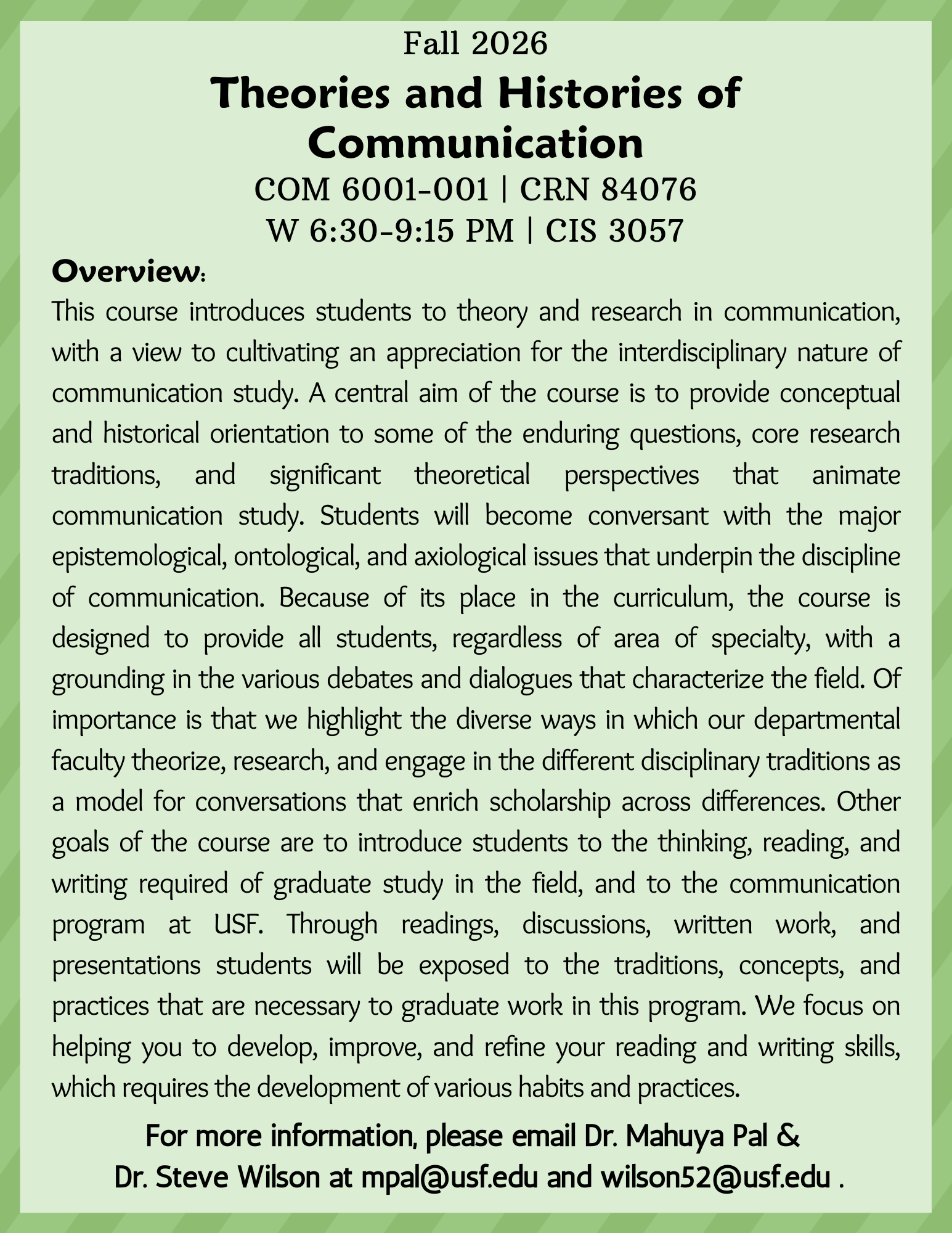COM 6001 – Theories and Histories of Communication (Wilson & Pal)
