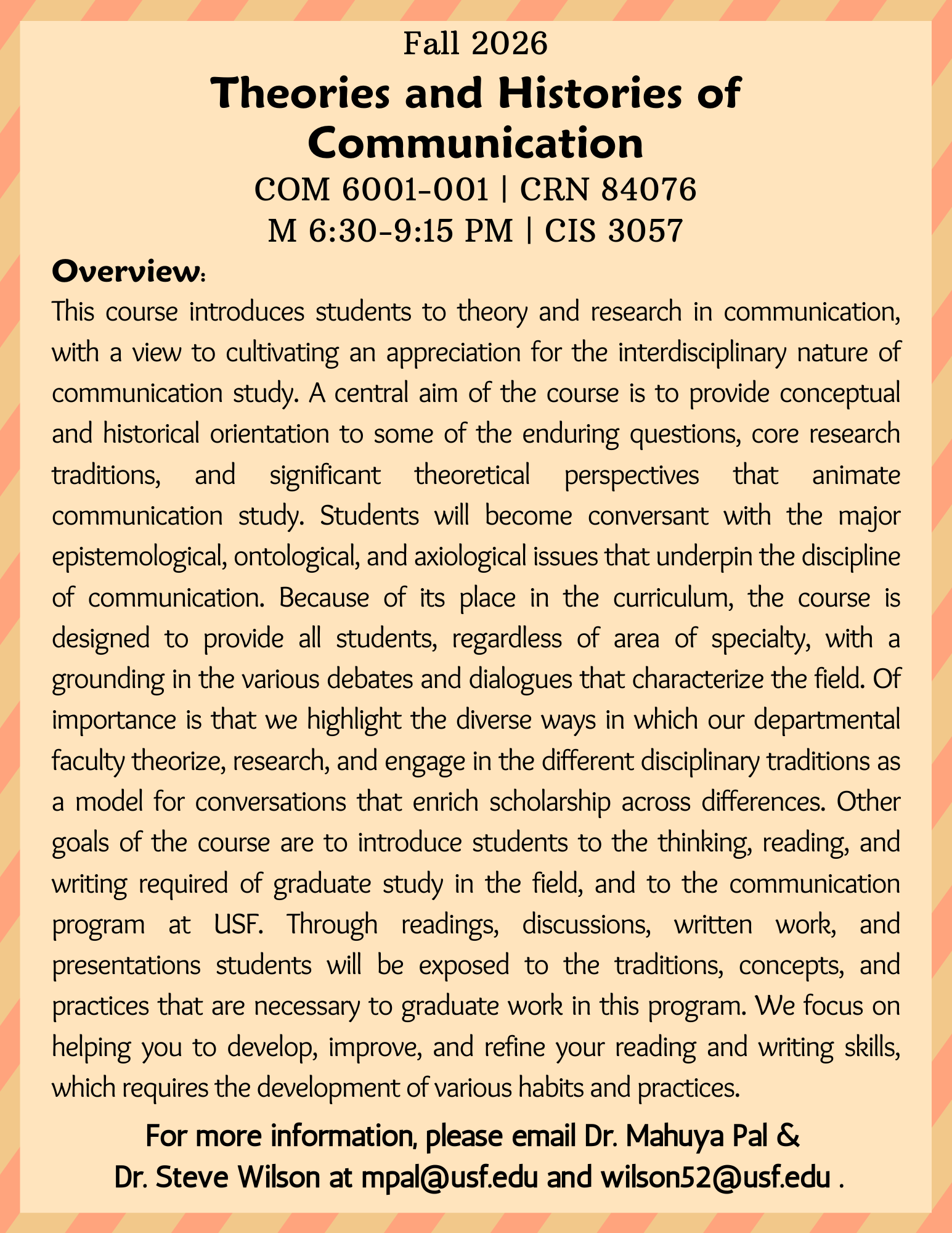 COM 6001: Theories and Histories of Communication (Pal & Scacco)