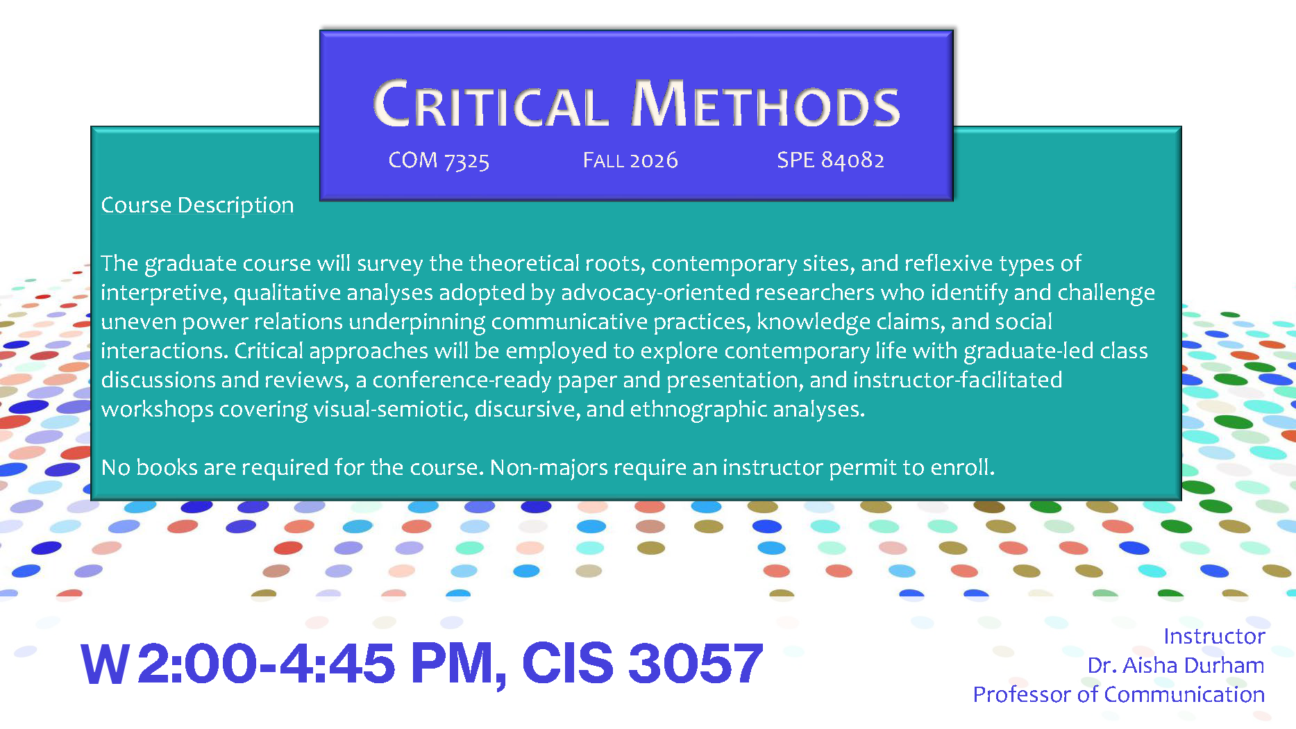SPC 6934 – Critical Approaches to Media Studies (Dubrofsky)