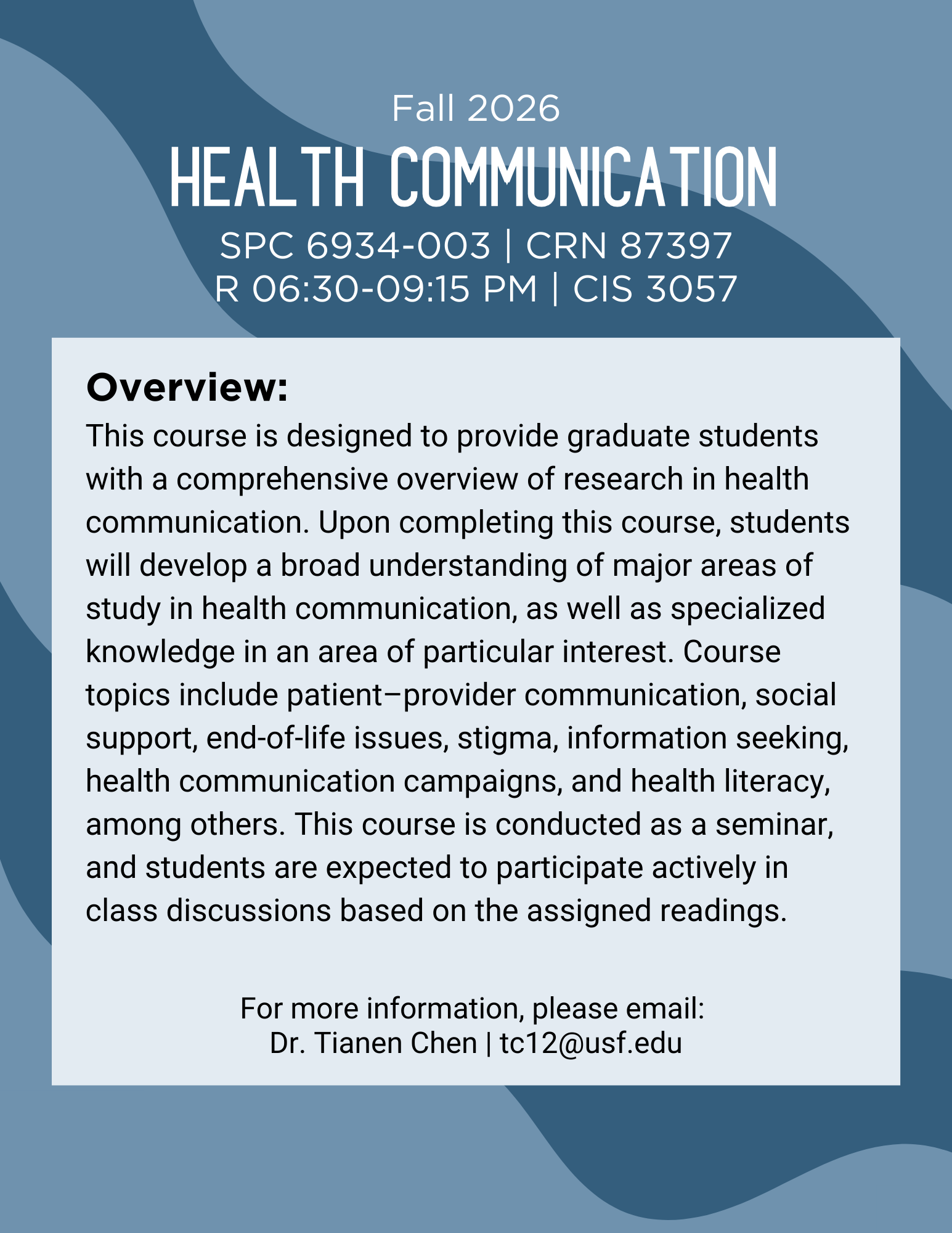 SPC 6934 – Interpersonal Health Communication (Dean Kruzel)