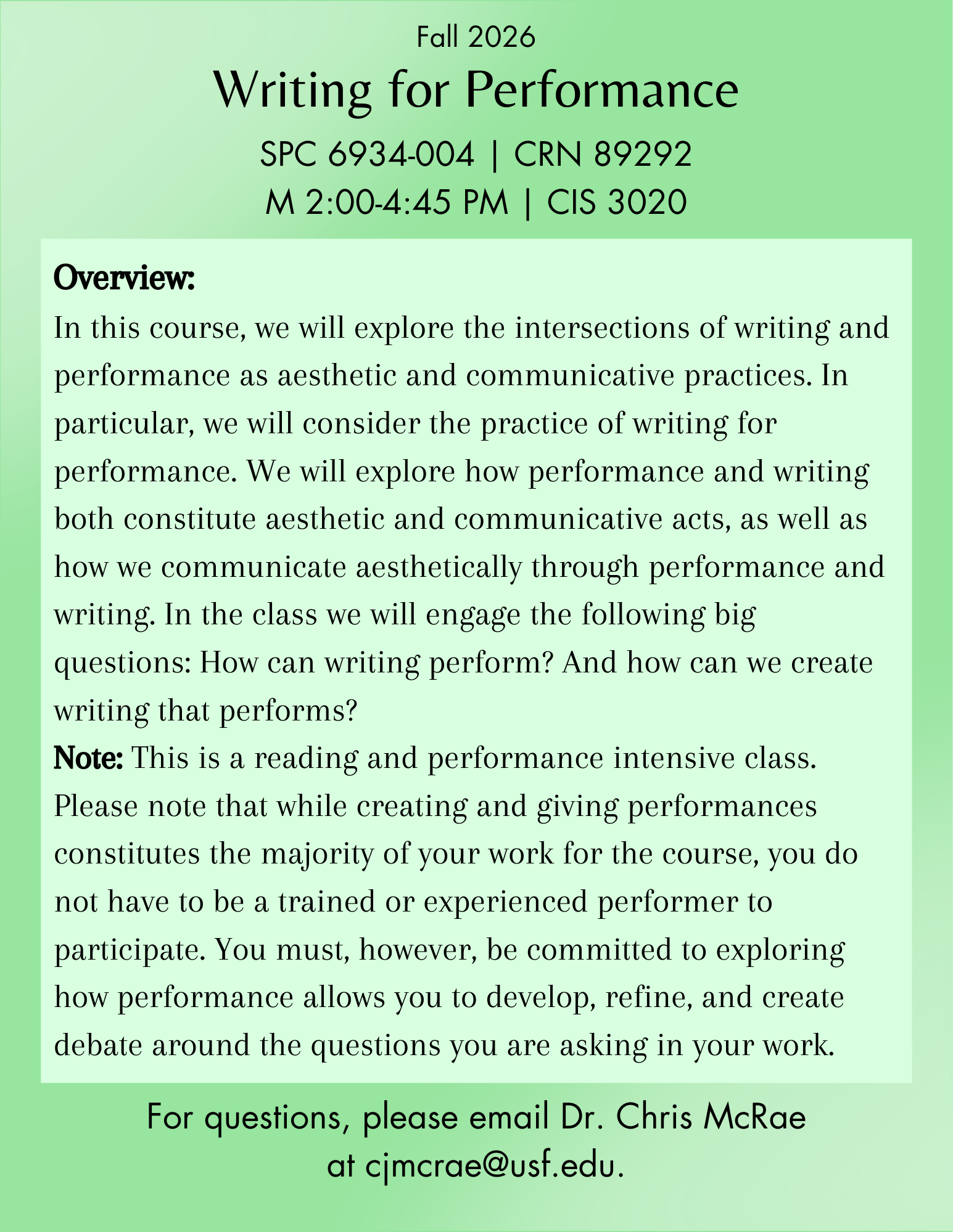 SPC 6934: Listening, Sound, and Performance (McRae)