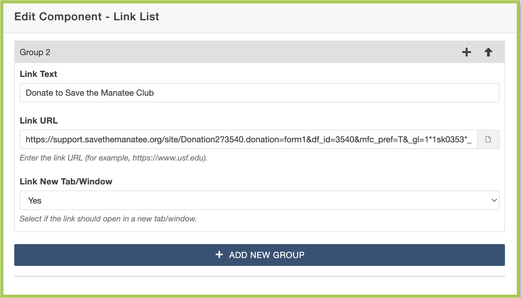 - Plus sign ±: This adds a new Link Group directly after this Link Group